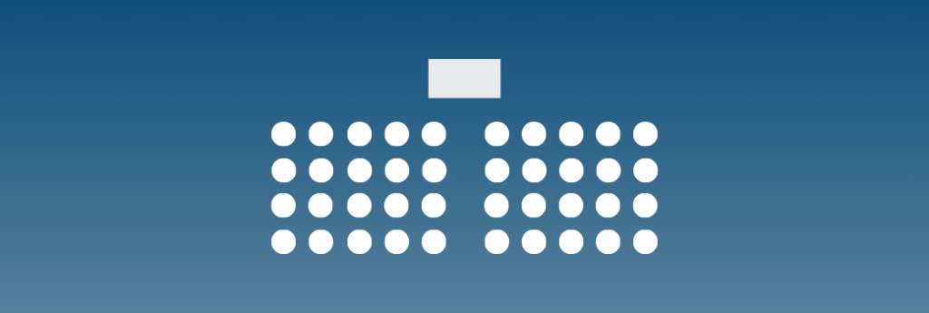 For meetings with a large number of participants, this conference setup is more typical when a single speaker is the focus. Usually this setup involves a wide-winged room with rows of chairs or tables with chairs (in case employees are wanting to take notes or need to work as part of the session), and a forward-facing layout where the seated individuals are focused on the speaker and their presentation (if applicable).