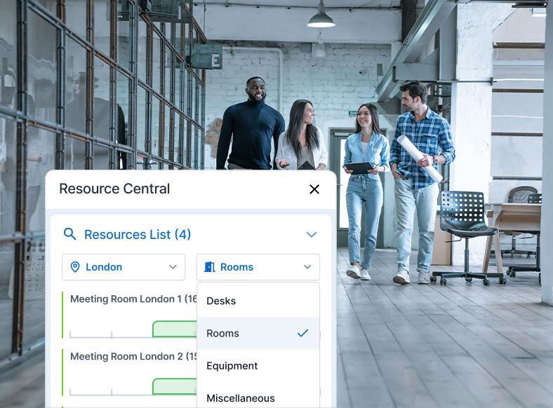 Vereinfachte Verwaltung von Besprechungsräumen und Arbeitsplätzen.