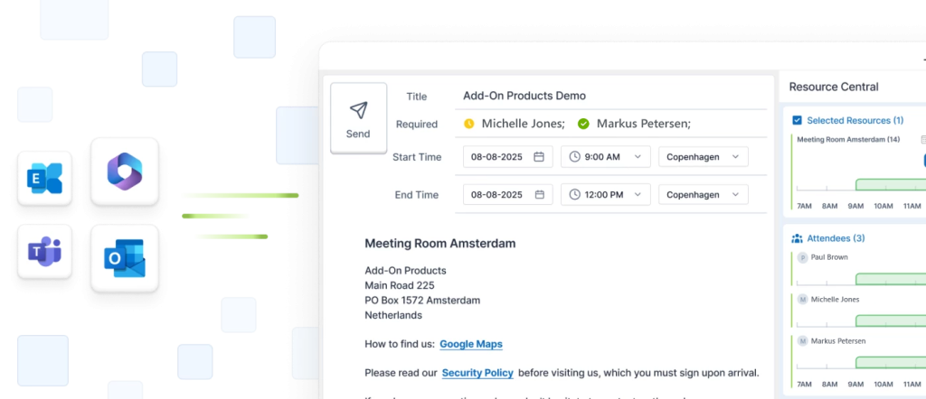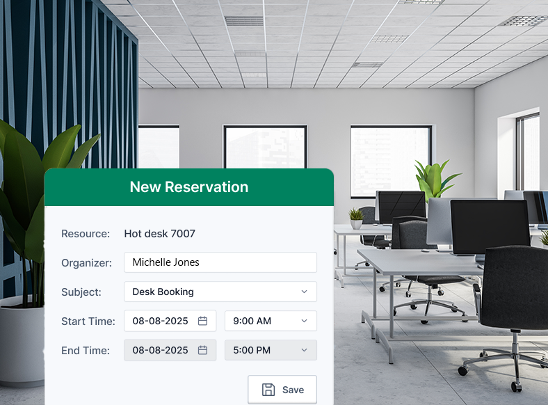 Moderne Softwarelösungen für die Buchung von Schreibtischen, Arbeitsplätzen, Besprechungsräumen, digitalen Schildern und anderen Ressourcen an flexiblen Arbeitsplätzen. Entwickelt für Microsoft Outlook®, Exchange & Microsoft 365.